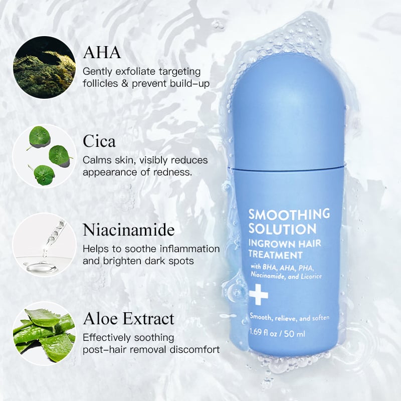 Silky Smooth Solution helps you say goodbye to ingrown hairs and post-shaving woes, leaving your skin refreshed and flawless:
