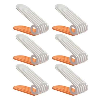 Anti-slip Design: Our shoe holder is designed with little bumps on the surface. along with top flaps at both sides and behind to prevent the upper shoe from slipping off.